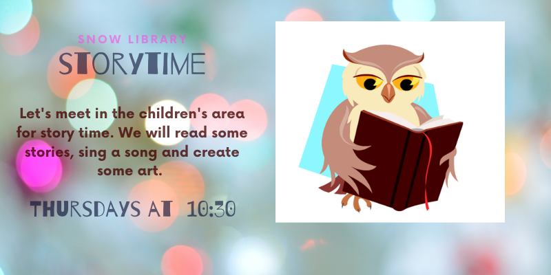 Let’s meet in the children’s area for some stories, a song and a craft. All are welcome. Sponsored by the Friends of Snow Library.